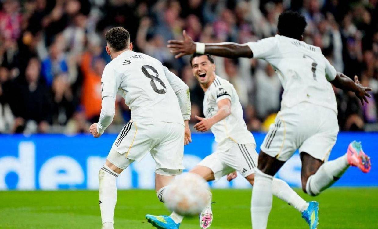 一场可能决定西甲冠军归属的马德里德比,在伯纳乌上演了史诗般的逆转。 十人应战的皇家马德里,在先丢一球的情况下,3-2力克同城死敌马德里竞技。 维尼修斯打破联赛对马竞的进球荒并梅开二度,成为英雄。 但胜利背后,裁判的判罚再次成为赛后焦点。